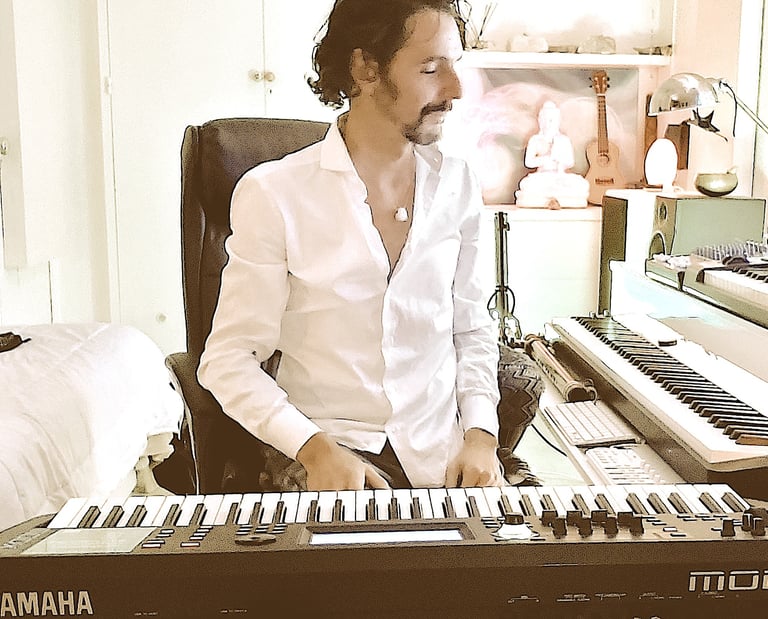 His work blends cinematic textures, expansive sound design, and a refined emotional subtlety that sensitizes and opens the listener’s heart, inviting states of elevation and transformation.